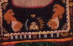 Selain ornamen Garuda Pancasila, turut menghiasi dadak merak dua buah gambar sang saka Merah Putih, yang terpasang horisontal mengapit narasi “Seni Reog”. Merah Putih sebagai identitas bangsa Indonesia mewakili kedaulatan negara itu pun turut terlihat terbalik, Putih Merah. Di ruangan itu terdapat dua buah dadak merak yang sama-sama terjungkir.